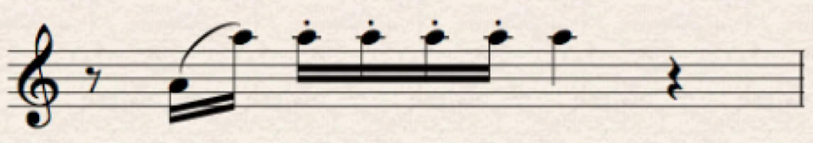 Es ist eigentlich nur der laszive Rhythmus des Tanzes in gebrochenen Dreiklängen. Er liegt in unserem Werk aber unpassenderweise die ganze Zeit unter dem schüchtern-melancholischen, seelenvollen Gilda-Gesang.