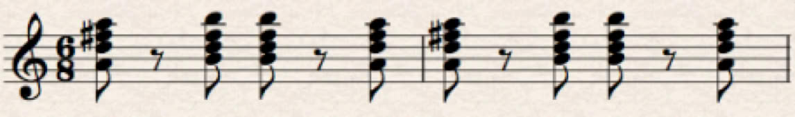 Begleitmotive haben meist gestischen Charakter. Sie setzen quasi ein Ausrufezeichen, und man kann auch leicht eine körperliche Bewegung damit assoziieren.