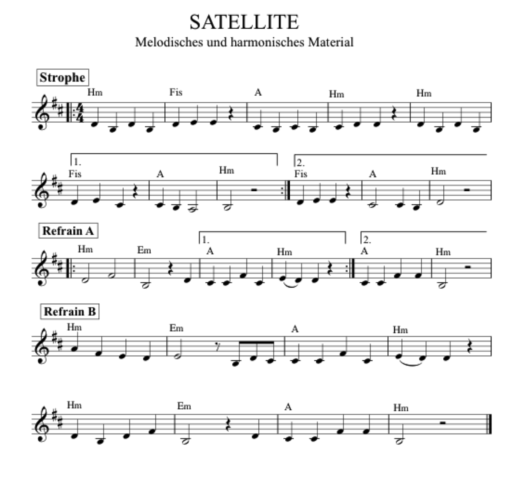 Der Song Contest ist eigentlich ein Kompositionswettbewerb, bei dem der beste Komponist gekürt werden soll. In diesem Fall steht allerdings der Riesenerfolg von SATELLITE in merkwürdigem Gegensatz zu der etwas ärmlichen musikalischen Faktur dieses Songs: Drei Minuten lang bewegt sich die Melodie fast ausschließlich und quasi entwicklungslos im Tonraum einer Quinte (h-fis), begleitet von vier stereotyp eingesetzten Begleitakkorden.