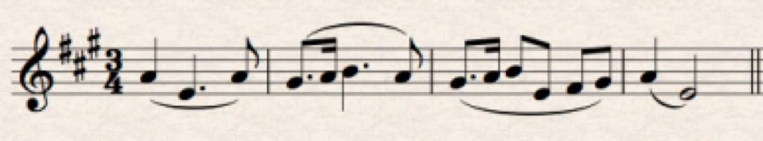Der nächste Wechsel von Tonika zu Dominante geht wieder über das Motiv, aber diesmal weich verbunden durch den Ton E, der ja in A-Dur/Moll Bestandteil sowohl von Tonika als auch von Dominante ist.